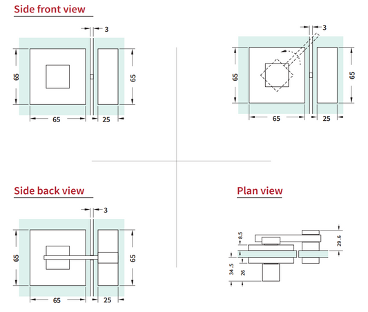 Square Shower Door Latch | Polished Chrome | Brass Modern square latch for frameless shower doors. Solid brass body with a bright chrome finish; designed to secure 8–10 mm glass with a smooth latch action. Material: Brass Glass Thickness: 8–10 mm Mechanism: Latch closure (holds door shut) Finish: Polished Chrome...