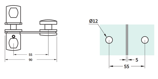Glass-to-Glass Latch | Polished Chrome | Brass Through-bolt latch for joining a glass door to a fixed glass panel. Reversible for left- or right-hand use. Material: Brass body Glass Thickness: 8–12 mm Handing: Left or right (reversible) Fixing: Requires Ø12 mm hole Protection: Washers on each bolt to protect the...