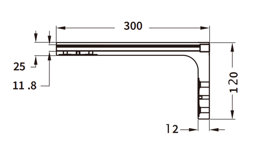 Support Bar Connector (Left) | Glass-to-Wall | Matte Black Left-hand connector for stabilizing a shower support bar to a wall-mounted glass panel. Finish: Matte Black Configuration: Glass-to-Wall (Left side) Measurements: 300 × 120 × 25 mm Material: Stainless Steel 304 / Brass Compatible Glass: 6–10 mm tempered Use: Support bar...