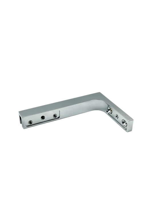 Support Bar Connector (Left) | Glass-to-Wall | Chrome Plated Left-hand connector for stabilizing a shower support bar to a wall-mounted glass panel. Finish: Chrome Plated Configuration: Glass-to-Wall (Left side) Measurements: 180 × 120 × 25 mm Material: Stainless Steel 304 / Brass Glass Thickness: 6–10 mm tempered Use: Support bar...