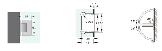 Offset Plate Wall to Glass 90° | Glass Corner Clamp Bracket for Shower Panel | Frameless Shower Fittings | Polished Chrome Finish Glass wall 90° swing shower door hinge has a load capacity of 35 kg. Doors up to 0.75 x 2.10 m can be realized. The hinge is designed...