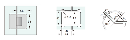 Glass-to-Glass 135° | Frameless Shower Hinge | Polished Chrome 135° swing hinge for mounting a shower door to a fixed sidelight. Solid brass construction provides smooth action and self-centering near the closed position. Finish: Polished Chrome Material: Brass Mounting Type: Glass-to-Glass (door to fixed sidelight) Opening Angle: 135° Self-Centering: Within...