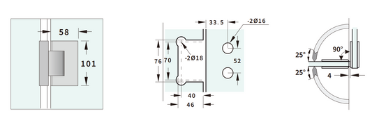 Glass-to-Glass 180° | Frameless Shower Hinge | Polished Chrome Glass-to-glass 180° swing shower door hinge with a load capacity of 35 kg. Designed for mounting a door to a fixed sidelight, it supports glass panels up to 0.75 × 2.10 m and provides smooth self-centering when the door is within...