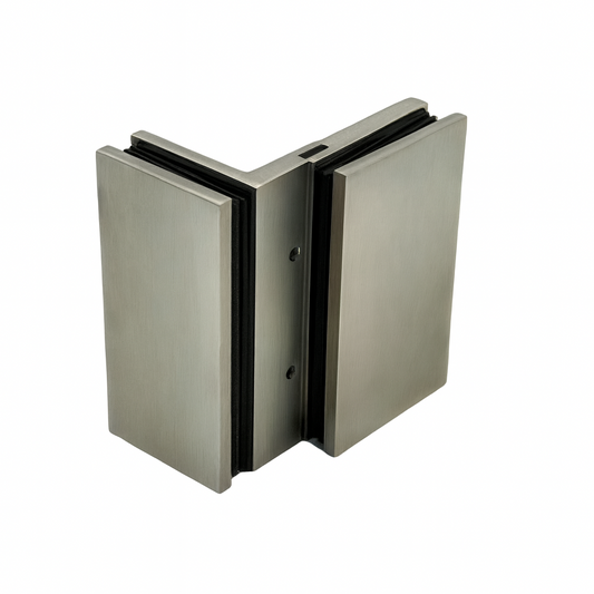 Glass-to-glass 90° latch for frameless pool gates. Comes with plastic inserts for secure clamping on the glass.