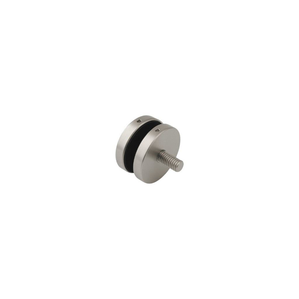 Round Glass Adapter | Ø30 mm Face | 10 mm Stand-Off | Satin Nickel | SS 316 Outdoor — Durable stainless steel standoff designed for securing glass panels to flat surfaces. Features a satin nickel finish, 10 mm stand-off, and Ø30 mm face, suitable for Ø16–22 mm glass holes. Ideal for outdoor use with a clean, double-cap through-bolt design.