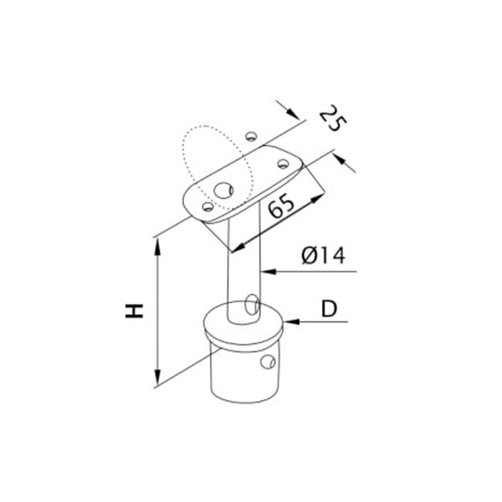 Stainless Steel balustrade handrail saddle with a straight saddle and curved fixing mount, made of stainless steel (Grade 304 for indoor or Grade 316 for outdoor use), compatible with.
