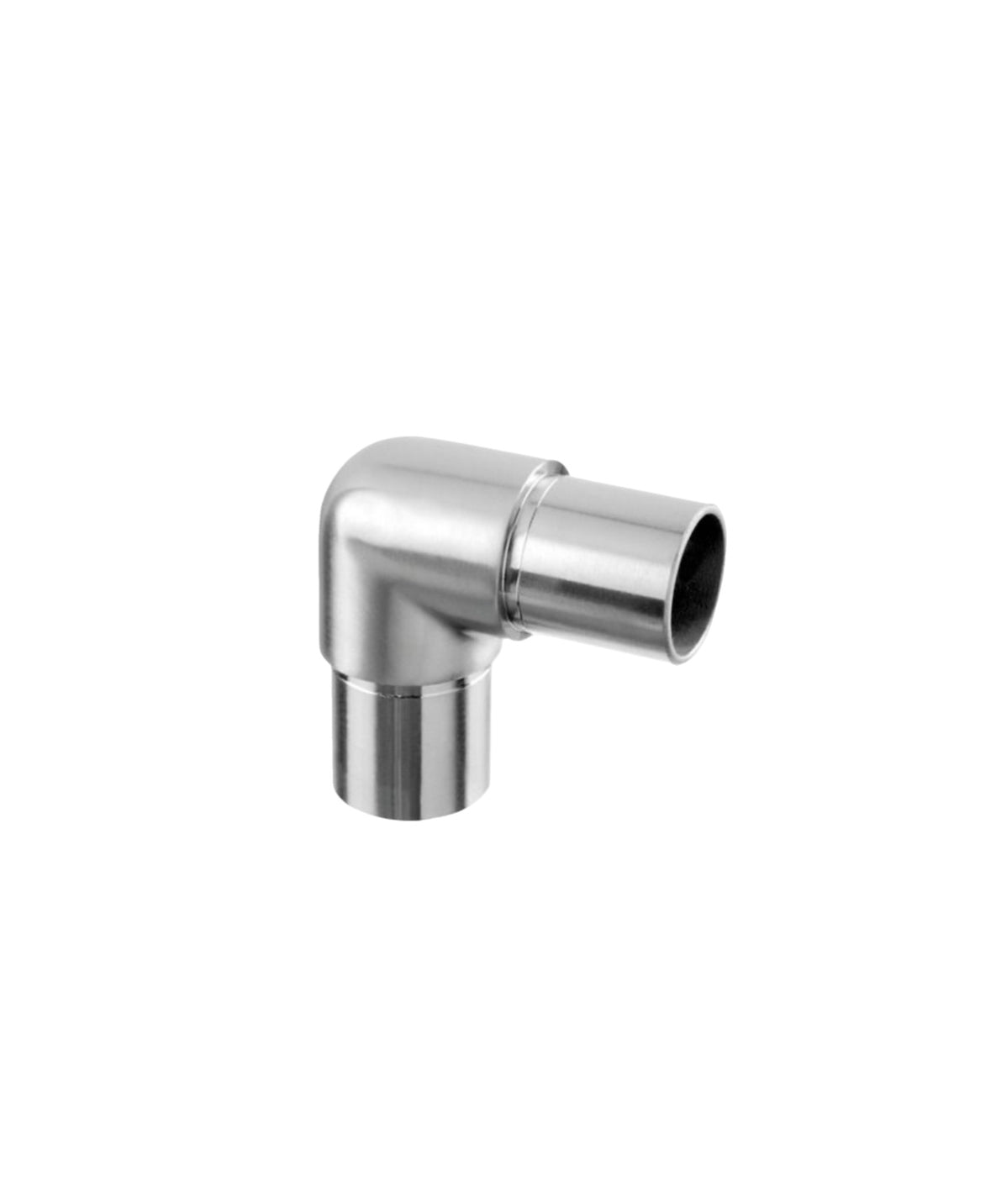 Stainless Steel 90° Tube Connector designed as a flush-fit elbow for joining handrail tubes at corners, available in Ø42.4 mm (304 – indoor) or Ø48.3 mm (316 – outdoor).