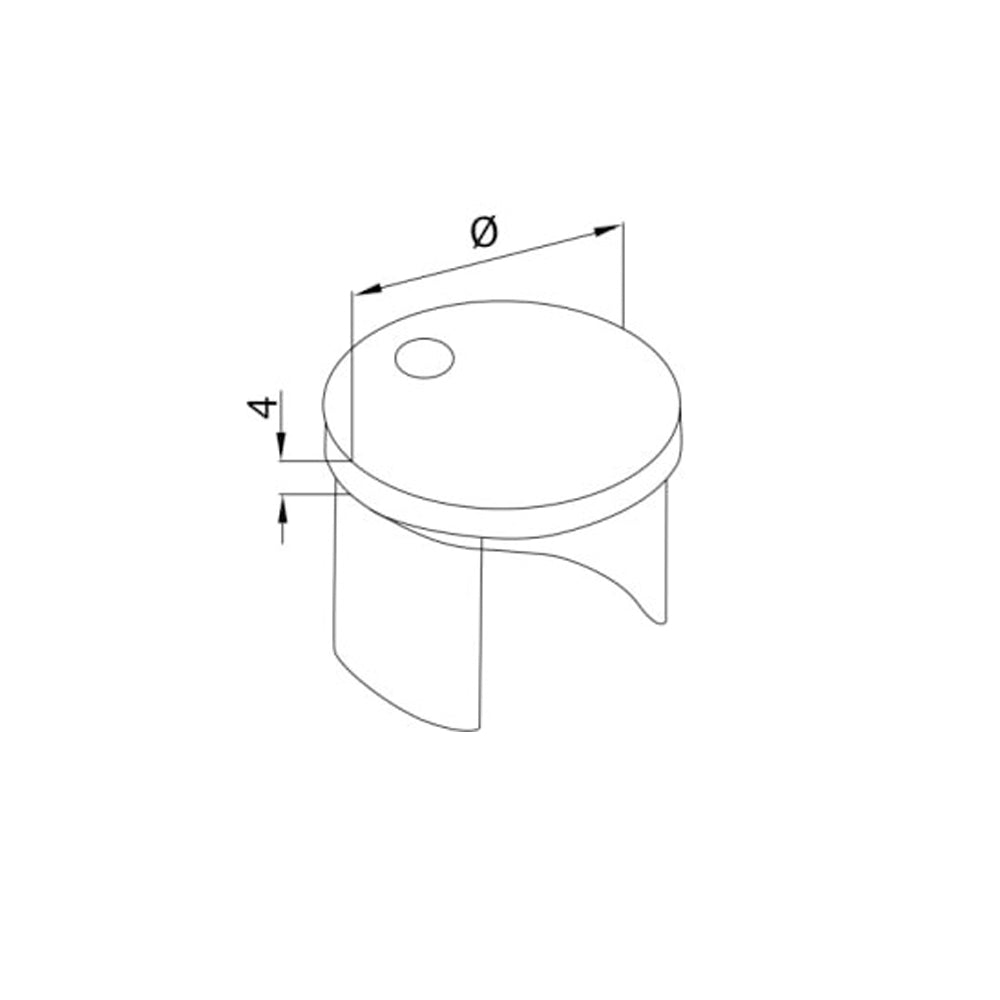 Stainless Steel Round Handrail Channel End Cap with a 4 mm height, designed for glue-in installation (adhesive-fit), compatible with Ø42.4 mm (Grade 304 – indoor) or Ø48.3 mm (Grade 316 – outdoor) systems, supplied as 1 × round handrail channel end cap.