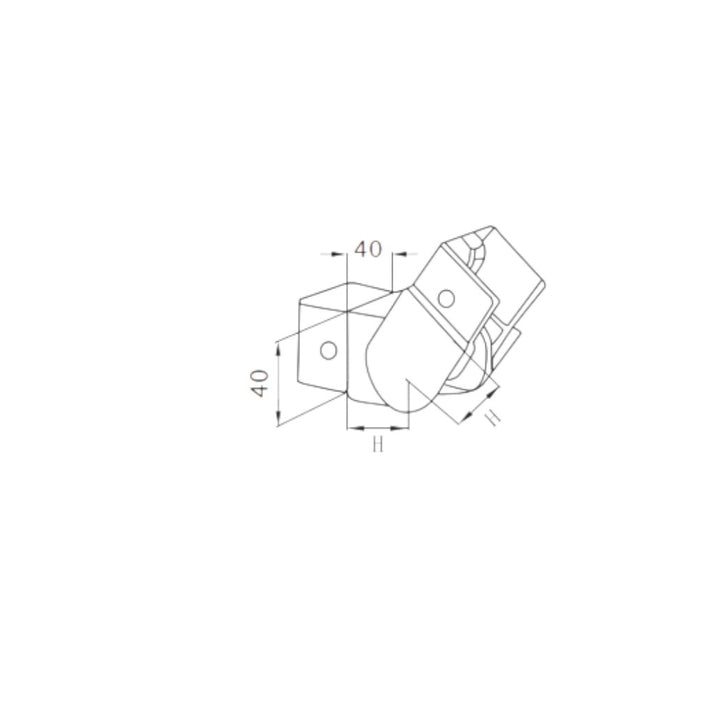 Adjustable upward square cap rail connector made of stainless steel (304 for indoor Ø42.4 mm, 316 for outdoor Ø48.3 mm), designed for 40 × 40 mm profiles with a 30 mm rise and 25°–55° adjustable angle.