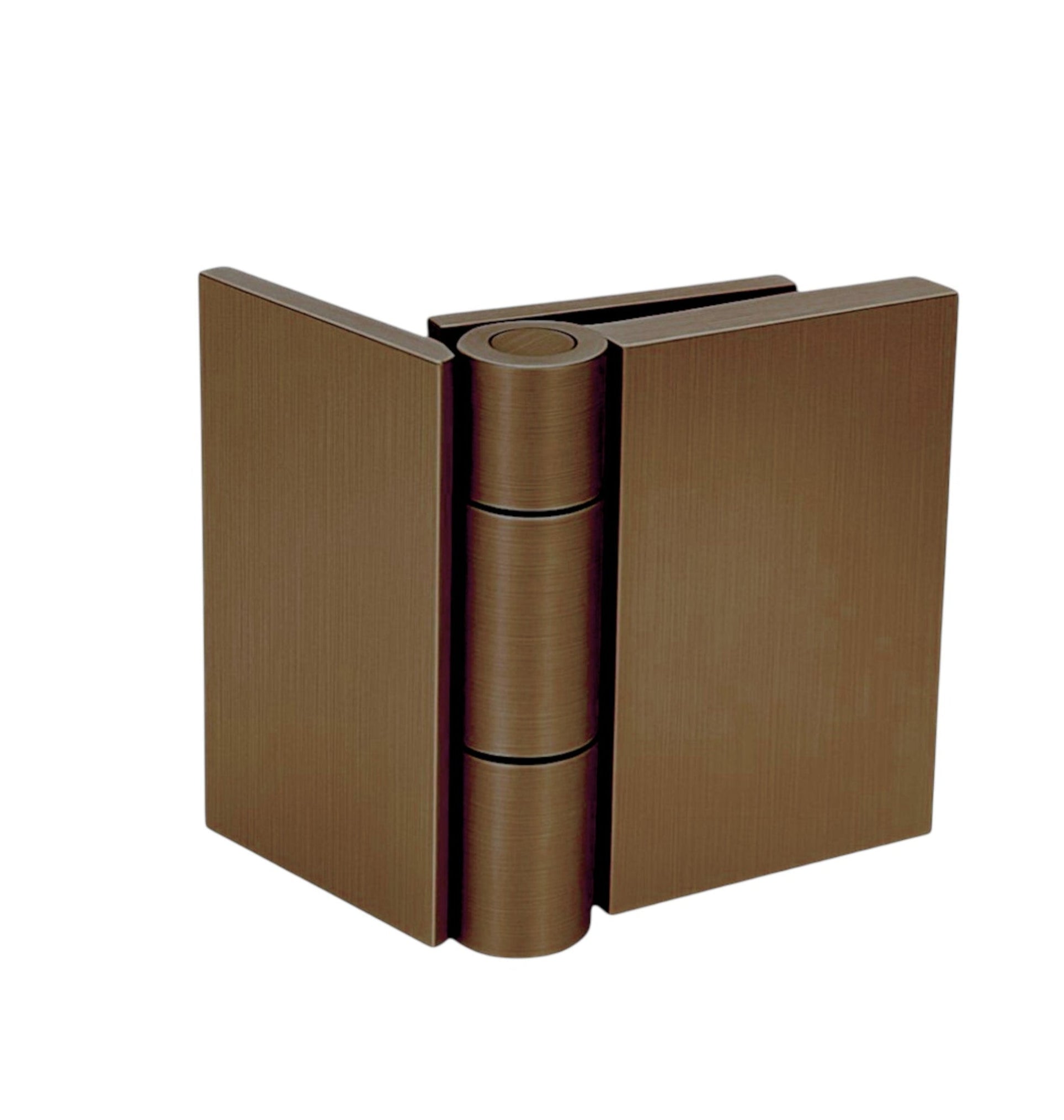 Wall-to-Glass 90° Shower Hinge — Antique Brass A durable solid brass 90° hinge for mounting a shower door to a wall or fixed panel, compatible with 6–10 mm tempered glass doors up to 45 kg, and supplied individually as a single hinge per package.