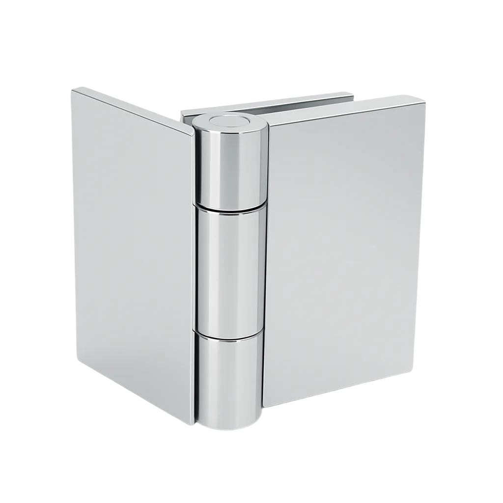 Wall-to-Glass 90° Shower Hinge — Polished Chrome A durable solid brass 90° hinge for mounting a shower door to a wall or fixed panel, compatible with 6–10 mm tempered...