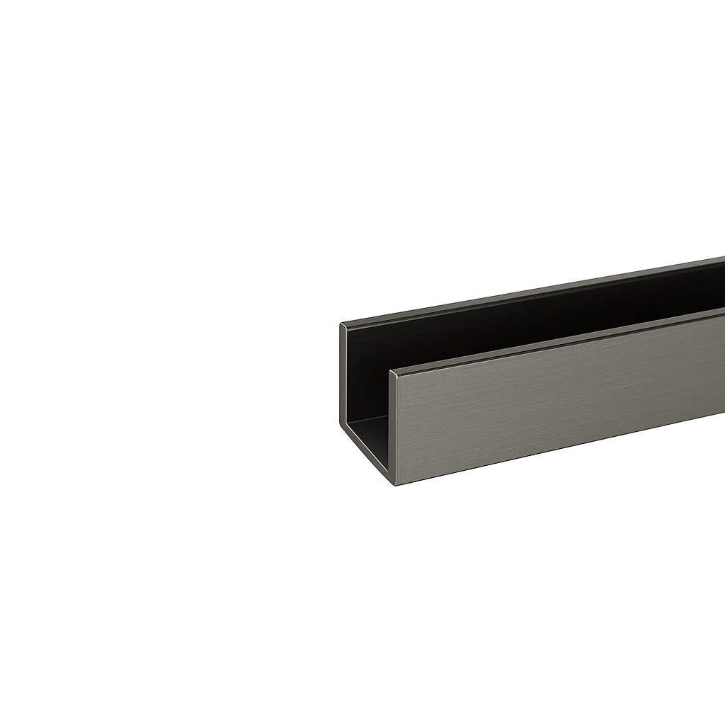 A slim aluminum U-channel supplied in a single 2500 mm length is designed for securing fixed 10 mm glass panels and delivering a clean, modern look in wet areas and shower partitions.