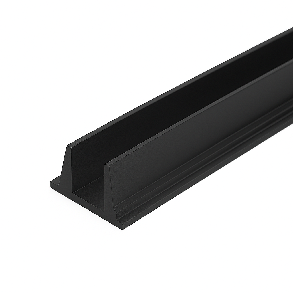 A 2.5 m clip-on aluminum cover is designed to conceal fixings and provide a clean finished for 10 mm glass installations, supplied as a single cover cap.