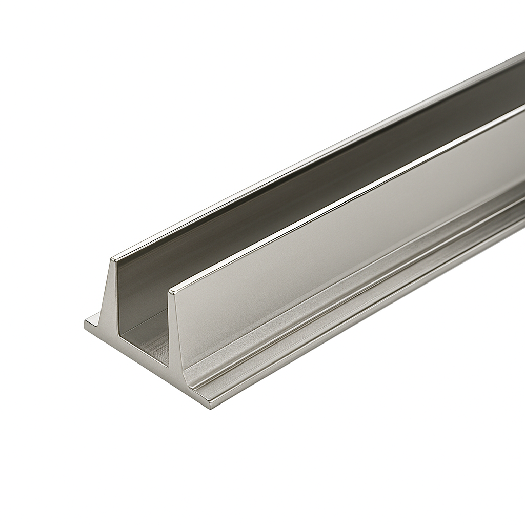 A 2.5 m clip-on aluminum cover is designed to conceal fixings and provide a clean finished for 10 mm glass installations, supplied as a single cover cap.