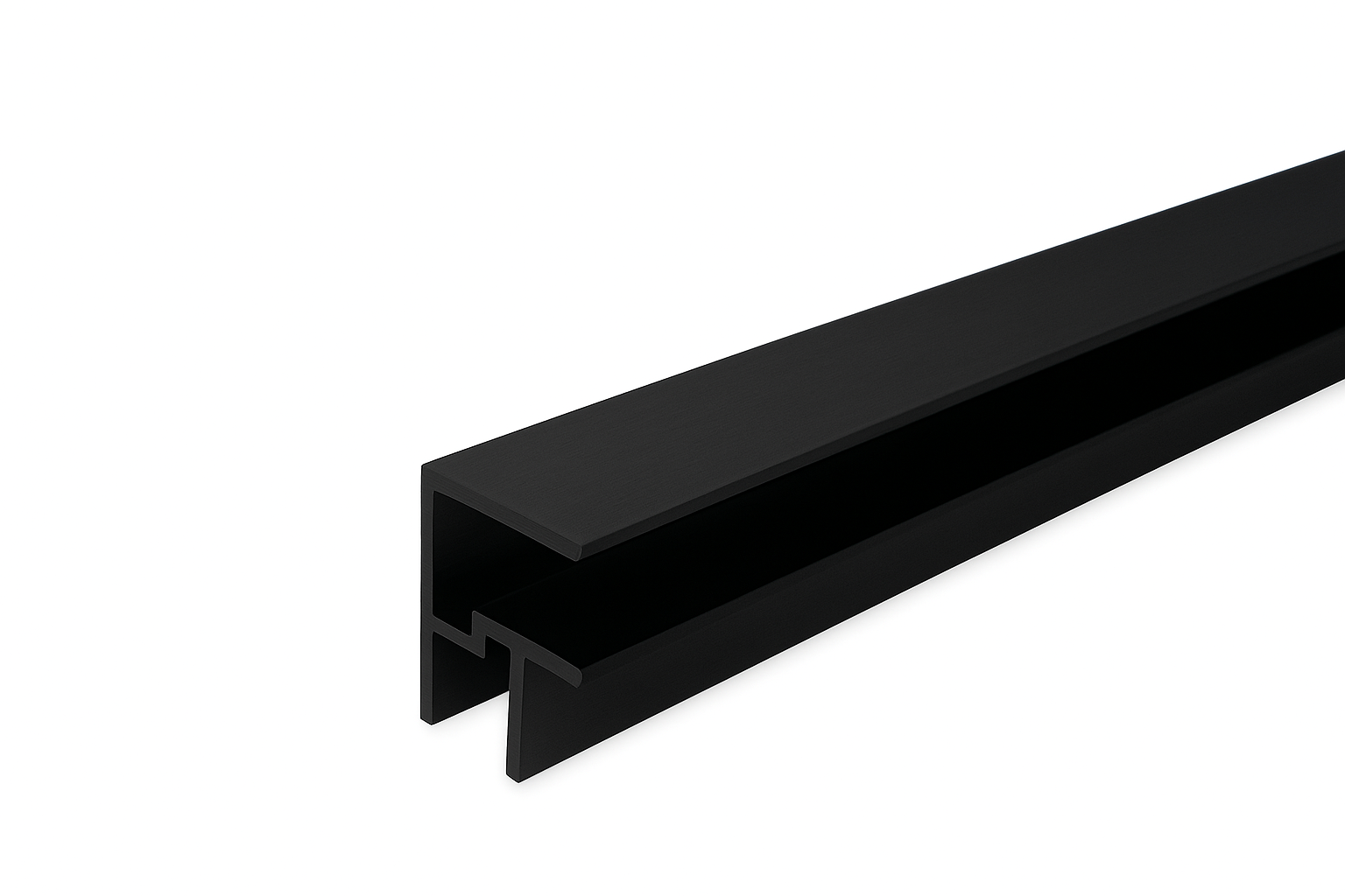 Glass-to-Glass 90° Channel — Matte BlackA 2,500 mm channel with 22 × 26.8 × 14.3 × 2 mm dimensions, designed for secure 90° glass-to-glass...