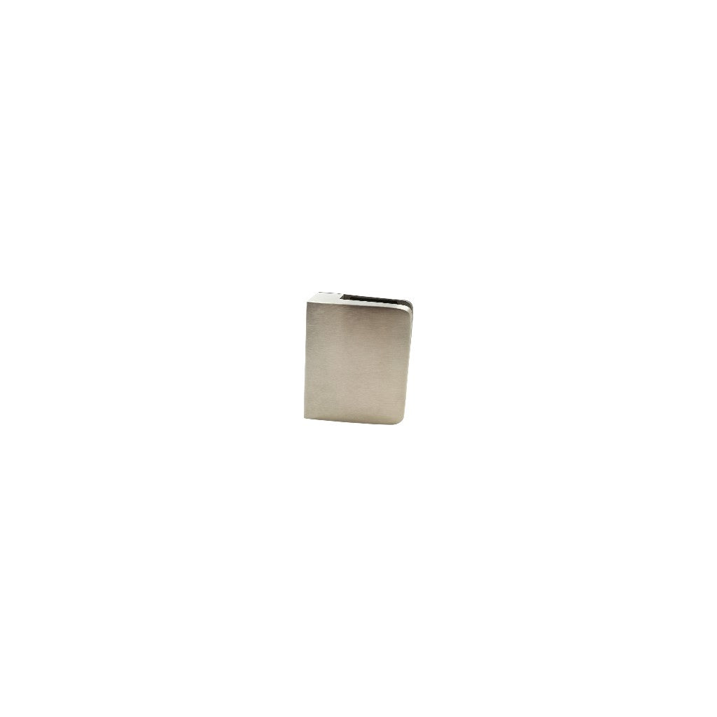 Heavy square tube-mount glass clamp made of stainless steel with a satin nickel finish, designed for outdoor use to secure 21.5 mm glass panels,...