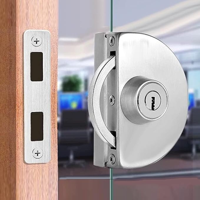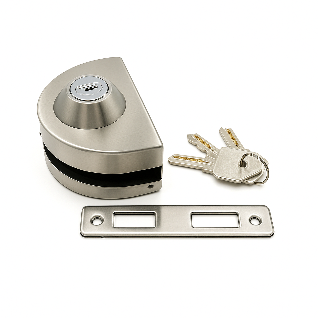 Glass-to-Wall Door Lock with Key | Half-Round | Satin Nickel