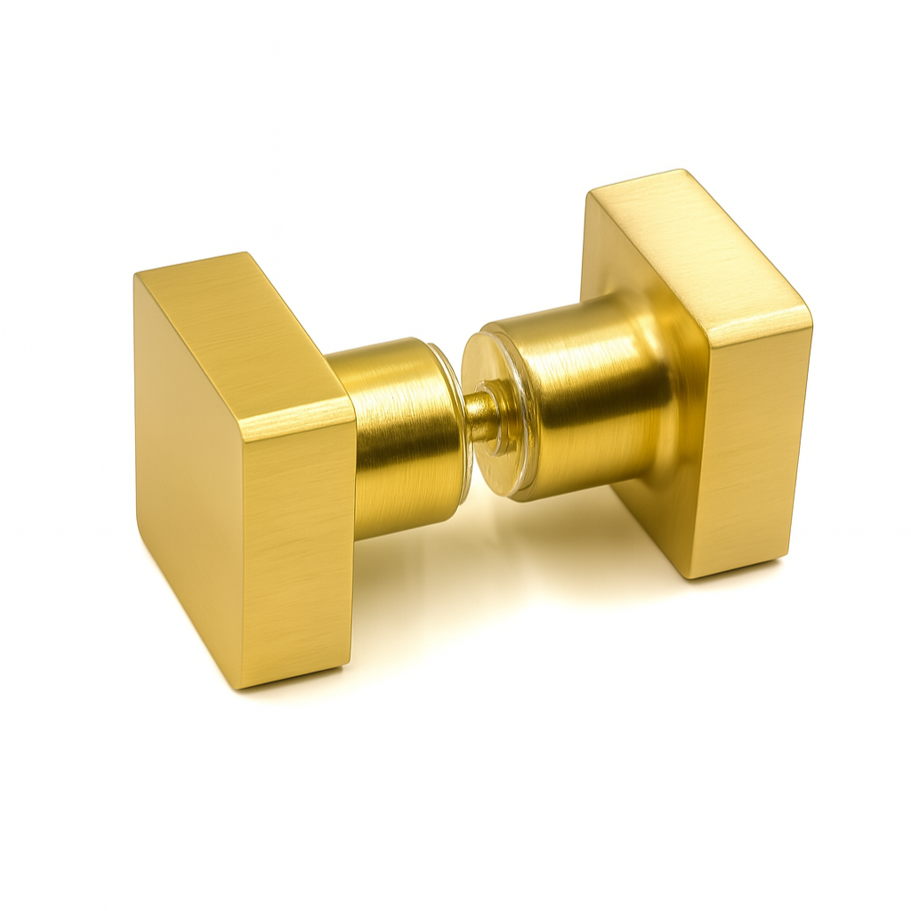 Double Pull Knob | Frameless Shower Door | Brushed Gold