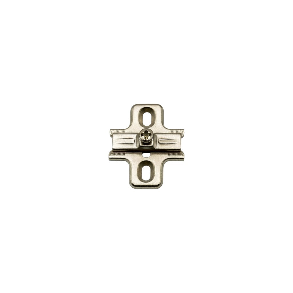 Glass Door Hinge Mounting Plate | Chrome Plated — Mounting plate designed for securing inset or overlay glass door hinges to cabinet structures. Compatible with standard glass hinge systems and finished in polished chrome for a clean, professional look.