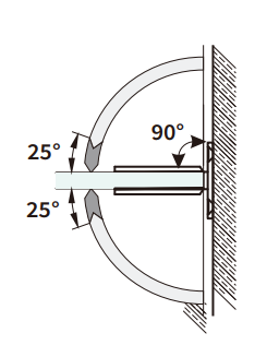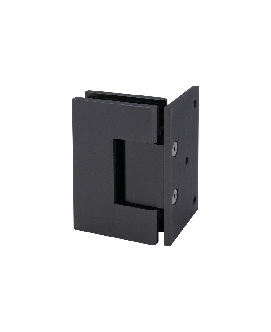 Glass wall 90° swing shower door hinge has a load capacity of 35 kg. Doors up to 0.75 x 2.10 m can be realized. The hinge is designed for right-angled corner showers and recess showers. It is screwed to the wall using two slotted holes and a securing hole.
