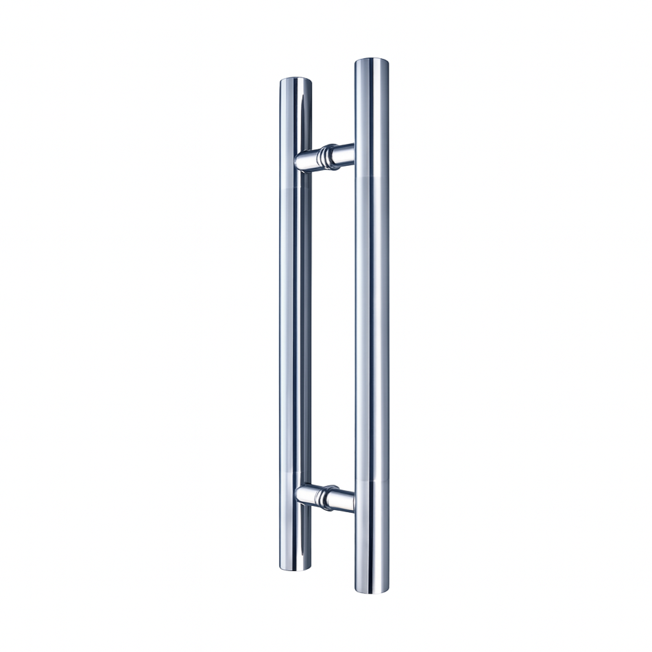 Ladder-style back-to-back pull handle set made of stainless steel with a polished chrome finish, featuring a 1000 mm overall length, 800 mm center-to-center spacing, and Ø25 mm...