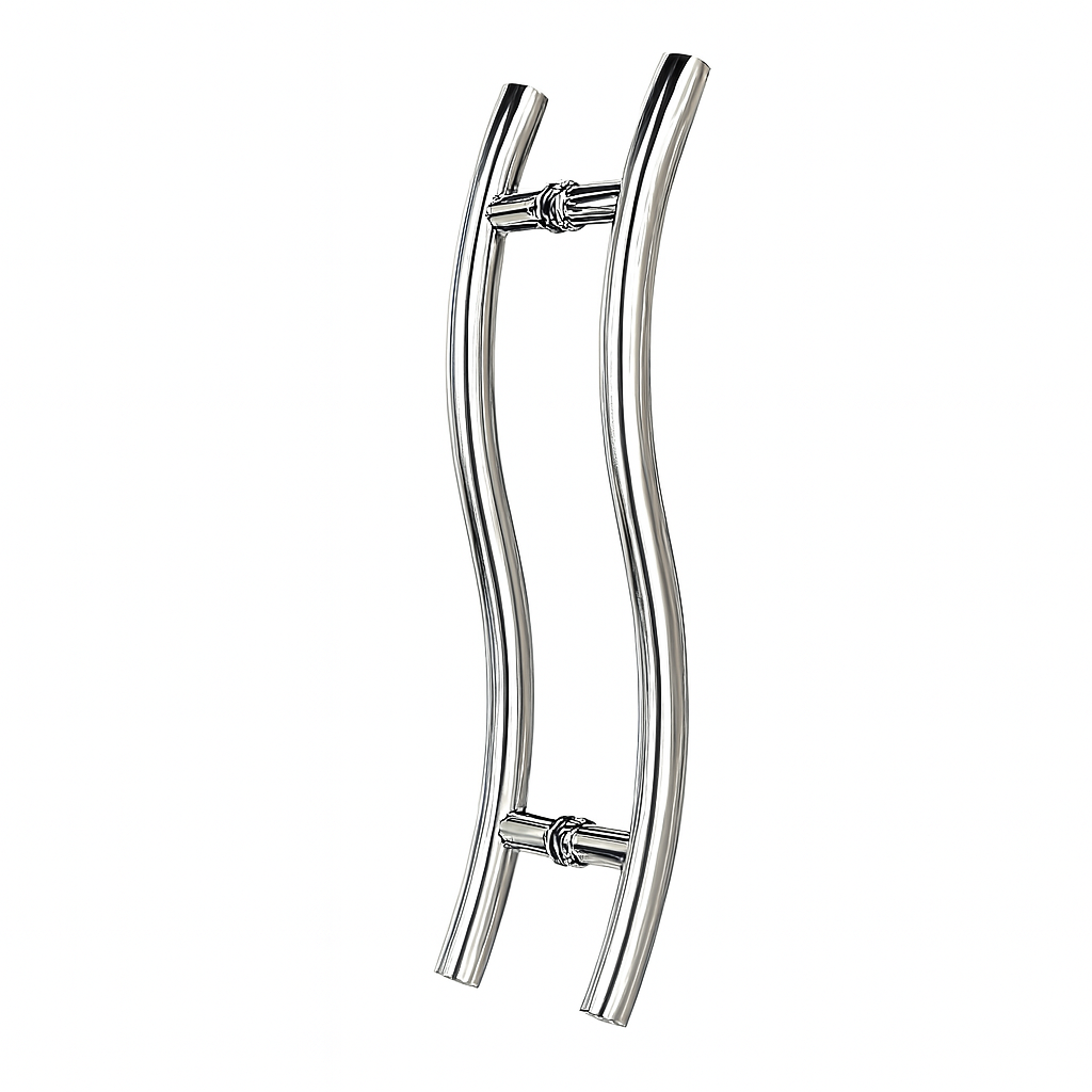 Stylish S-shaped back-to-back pull handle made of stainless steel with a polished chrome finish, featuring a 600 mm overall length, 400 mm center-to-center spacing, Ø32 mm tube...