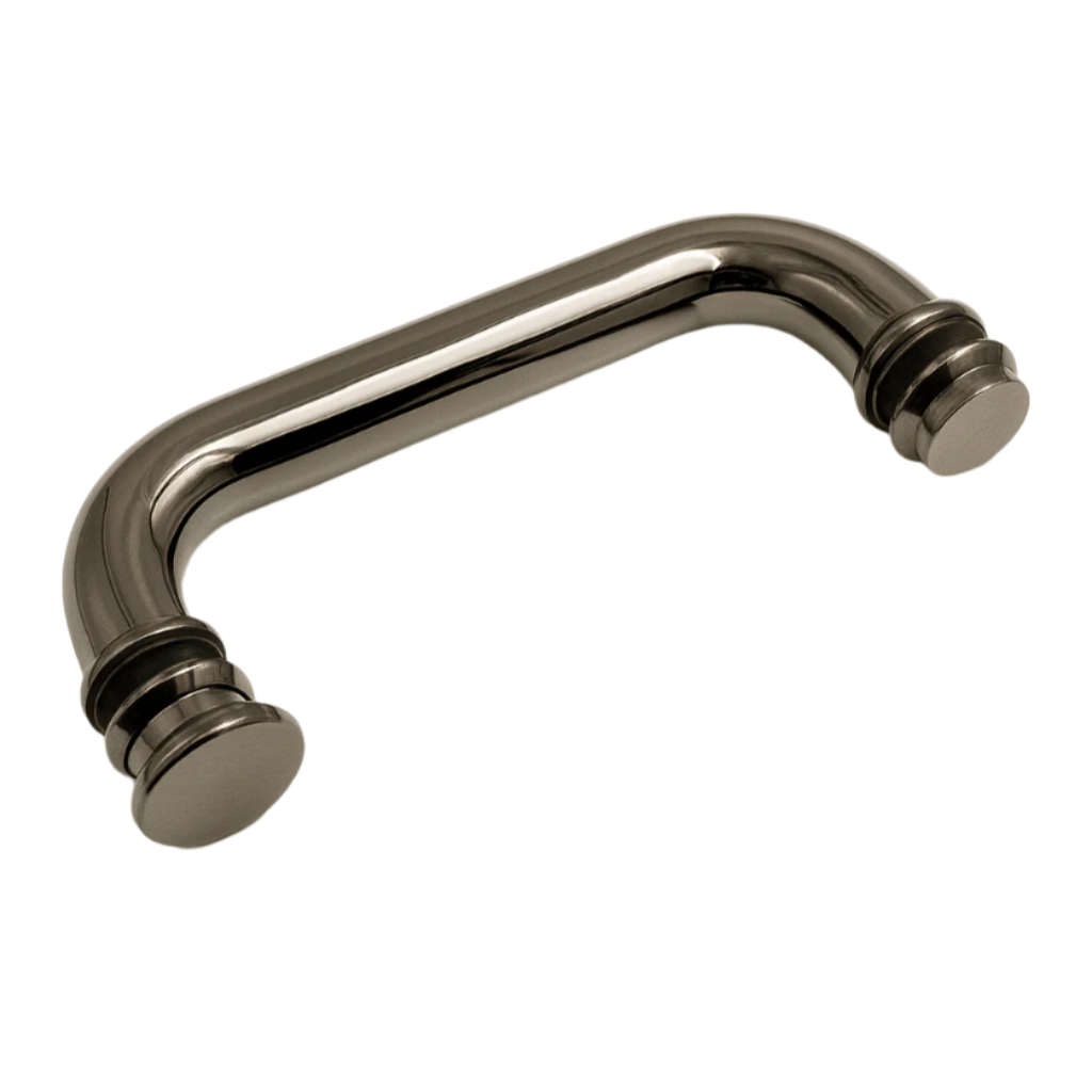 D-shape tower bar paired with a matching knob for a clean, modern look. Designed for through-bolt installation on glass or door panels.