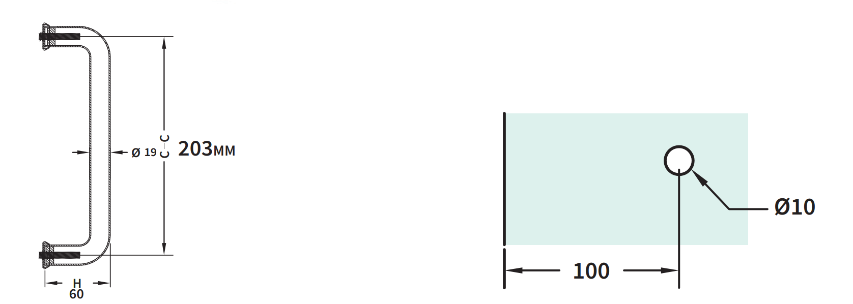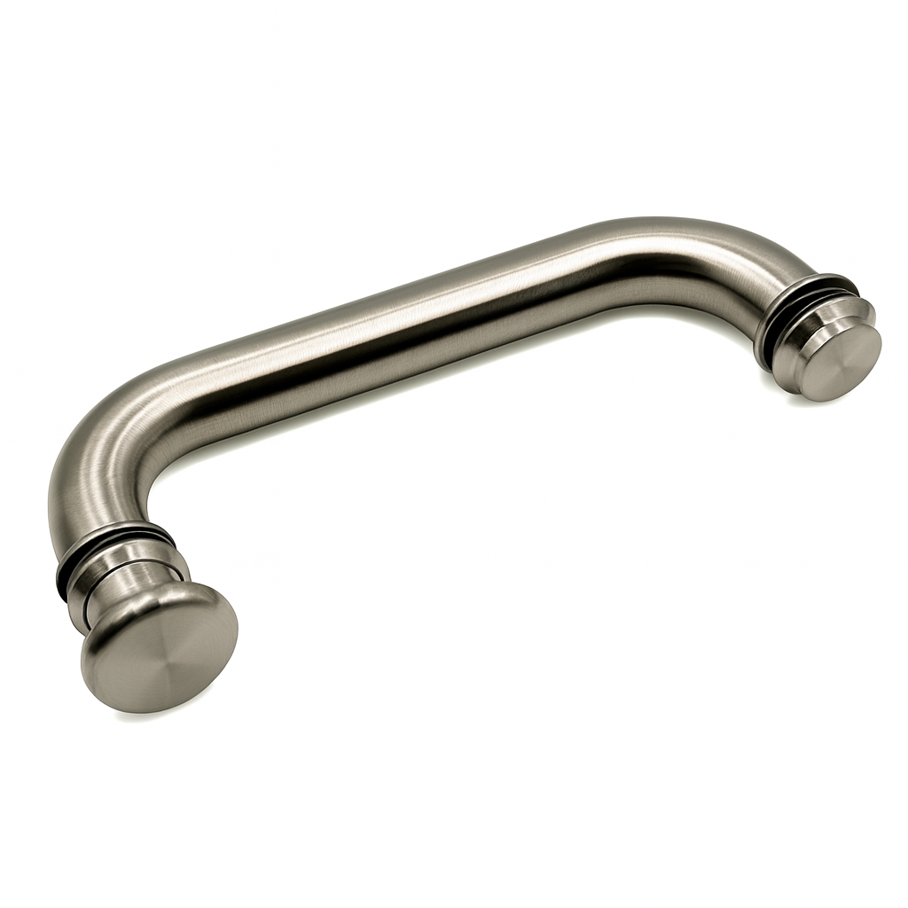D-shape tower bar paired with a matching knob for a clean, modern look. Designed for through-bolt installation on glass or door panels.