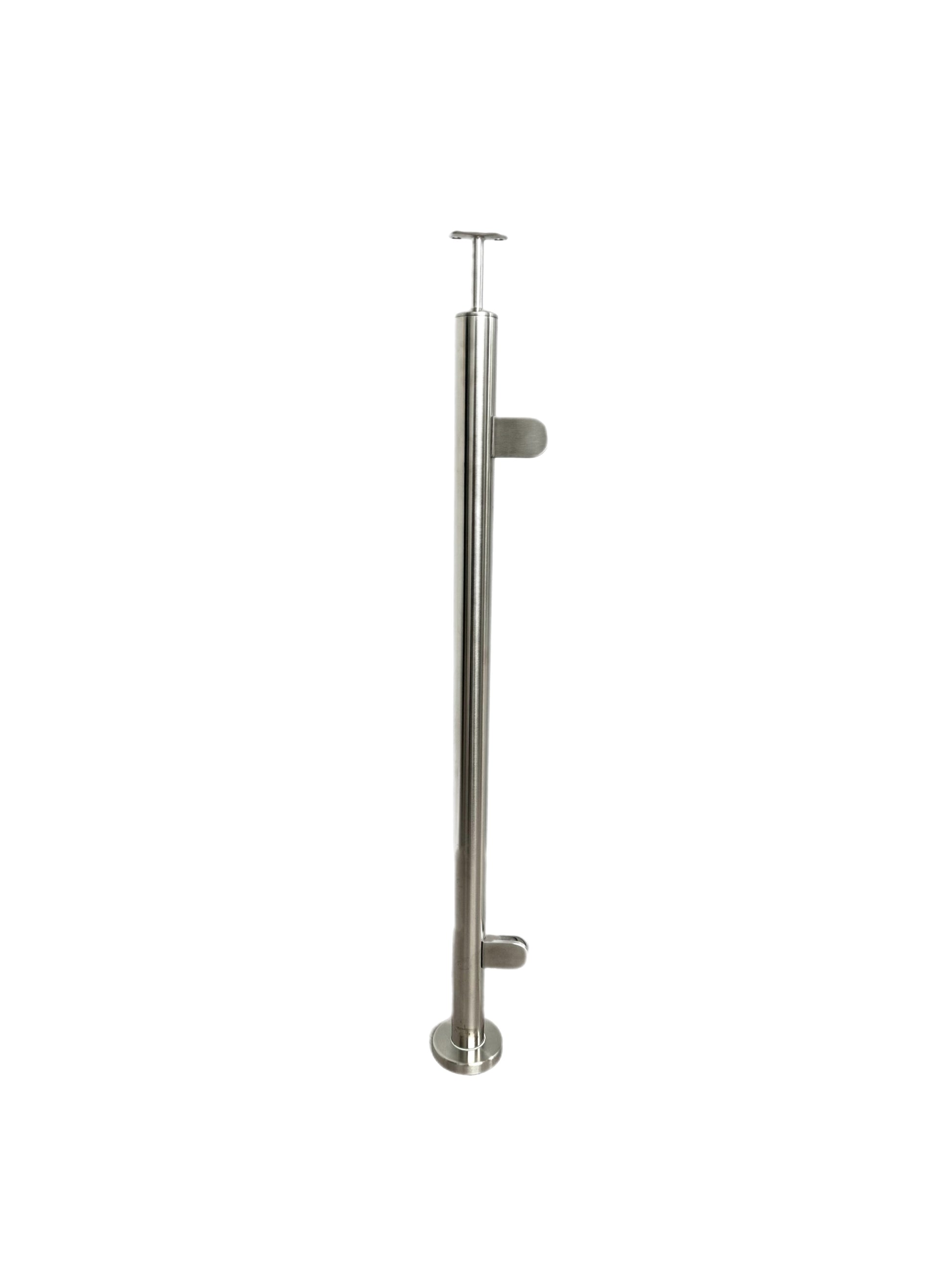 - End post- 316 stainless steel.- Post Diameter: 48.3mm x2mm - Glass Thickness: 10mm-12mm- Kit includes: 2x D Shape Clamp, 1x Handrail Saddle, 1x Base cover and 1x Post- Finish: Satin Nickel