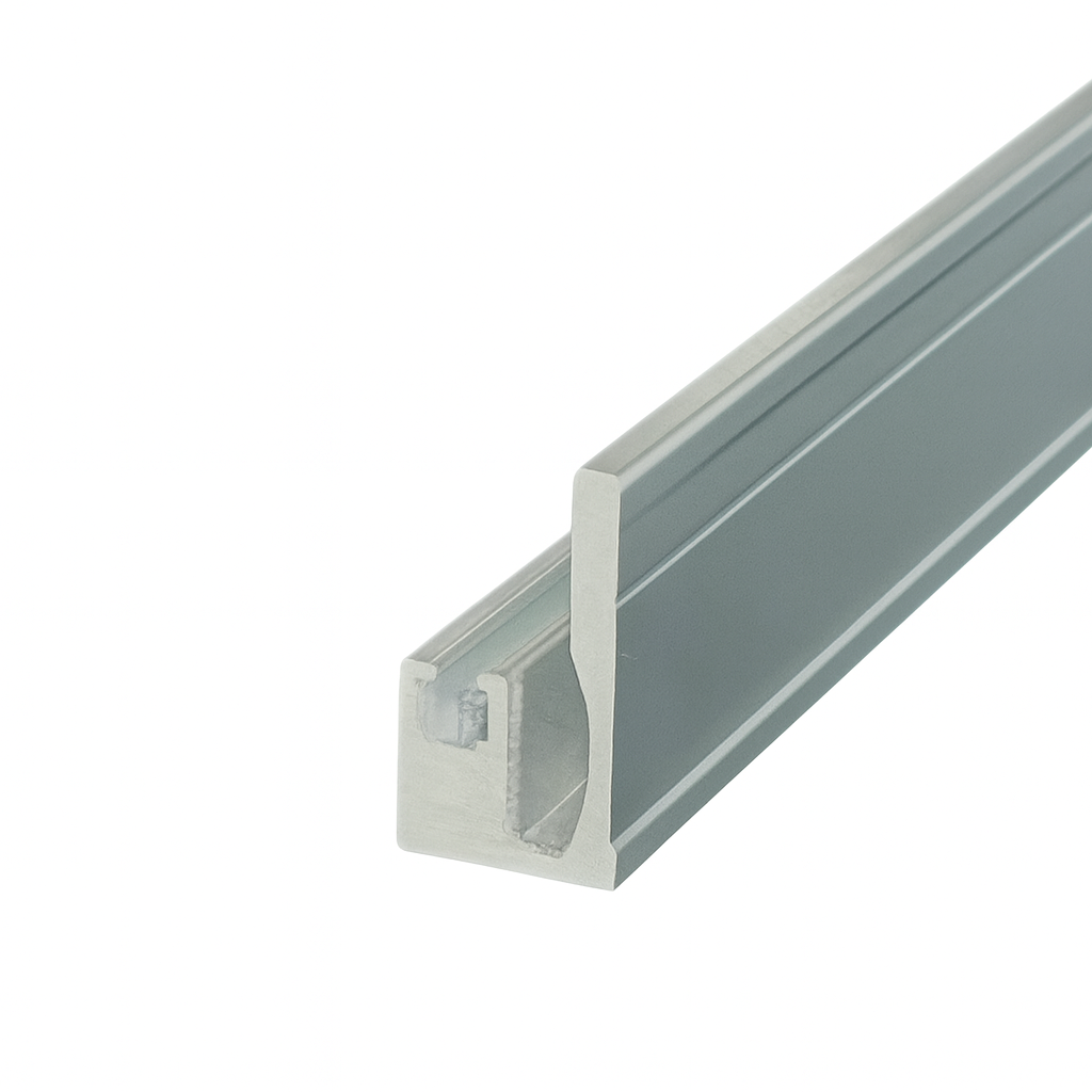Aluminum Profile for Magnet Seals | Single Track | Polished Chrome | 2.5m Length | 8–10 mm Glass — High-quality aluminum single track designed to hold magnetic seals for frameless glass doors and partitions. Suitable for 8–10 mm glass, featuring a polished chrome finish for a sleek and modern look.