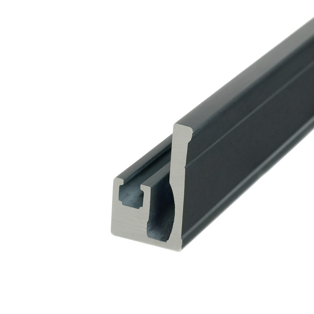 Aluminum Profile for Magnet Seals | Single Track | Matte Black | 2.5m Length | 8–10 mm Glass — High-quality aluminum single track designed to hold magnetic seals for frameless glass doors and partitions. Suitable for 8–10 mm glass, featuring a polished chrome finish for a sleek and modern look.
