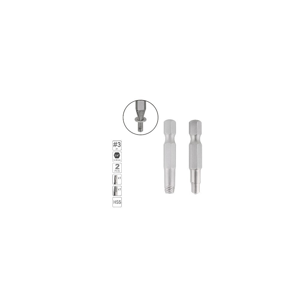 The Screw Extractor Set – Size #3 (2 PCS) is made from high-speed steel (HSS) for strength and longevity, designed to easily remove damaged, stripped, or broken screws and bolts of various types. Featuring a universal 1/4" (6.35 mm) hex shank for compatibility with most drills, it includes 1 extractor bit and 1 drill bit for a quick, two-step removal process.