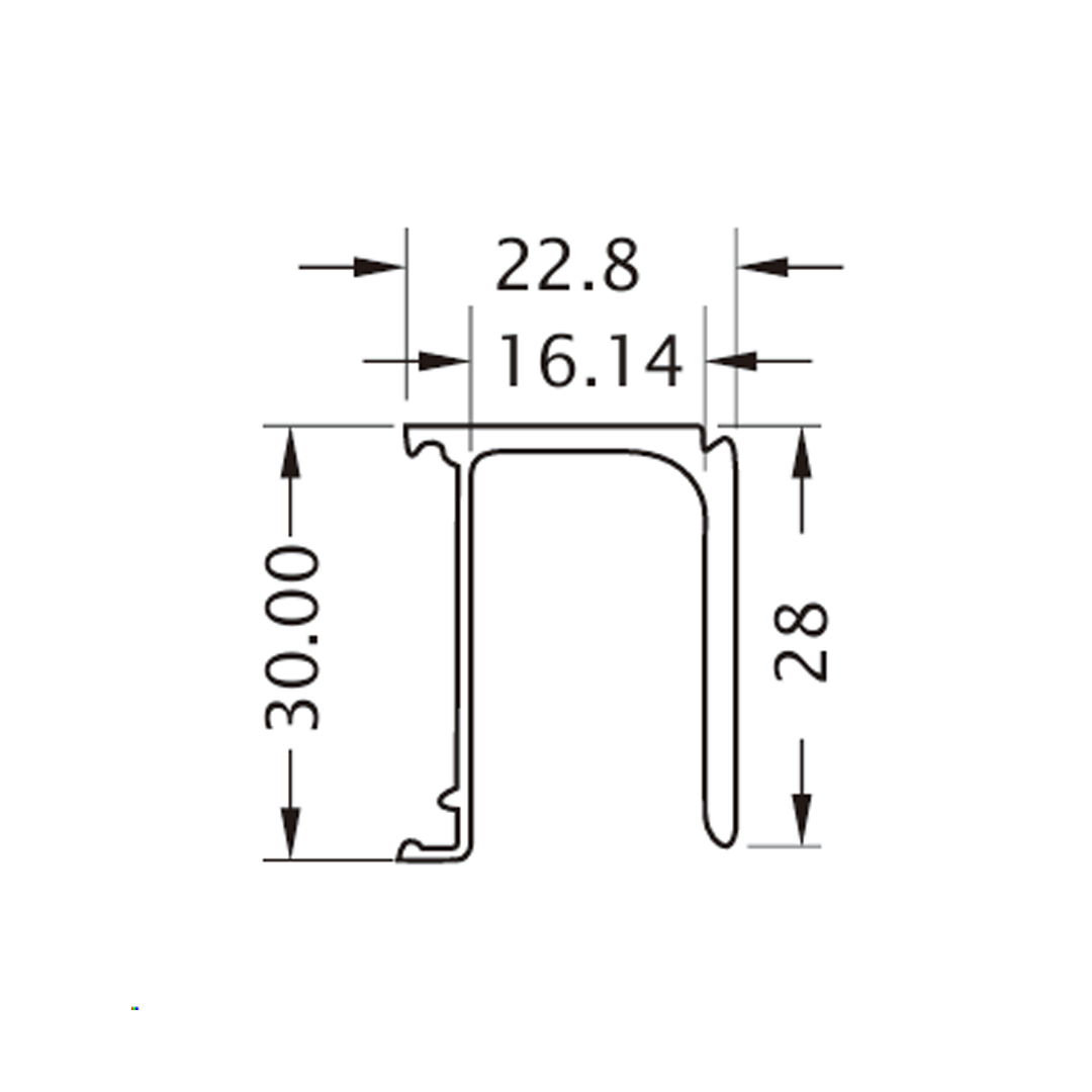 Anodized Aluminum sliding track with a silver finish, precision-engineered for smooth and reliable door operation with minimal friction; features a rigid, corrosion-resistant construction measuring 22.8 mm (W) × 30 mm (H), compatible with Series 110 and similar systems, and ideal for easy overhead or wall-mounted installation in residential or commercial sliding door applications.