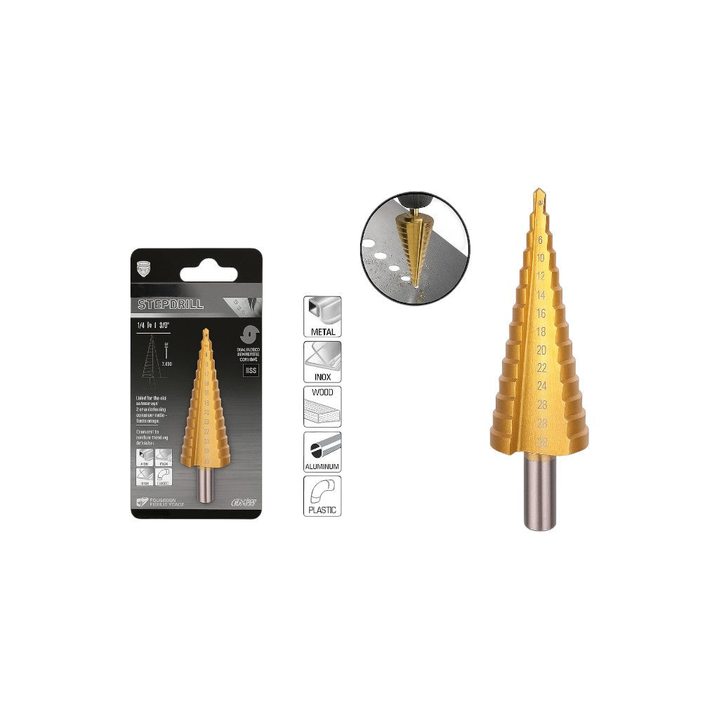 The Wood Drill Bits Set (6 PCS) includes flat spade bits in sizes 10 mm, 12 mm, 16 mm, 18 mm, 20 mm, and 25 mm — each 150 mm (6") long. Made from precision-ground steel for durability, these bits feature a 1/4" (6.4 mm) hex shank for a secure fit and centering tips with side cutters for fast, clean holes. Ideal for softwood, hardwood, PVC, and plasterboard, they’re perfect for carpentry, furniture making, and general construction. (Pack includes 6 pieces.)
