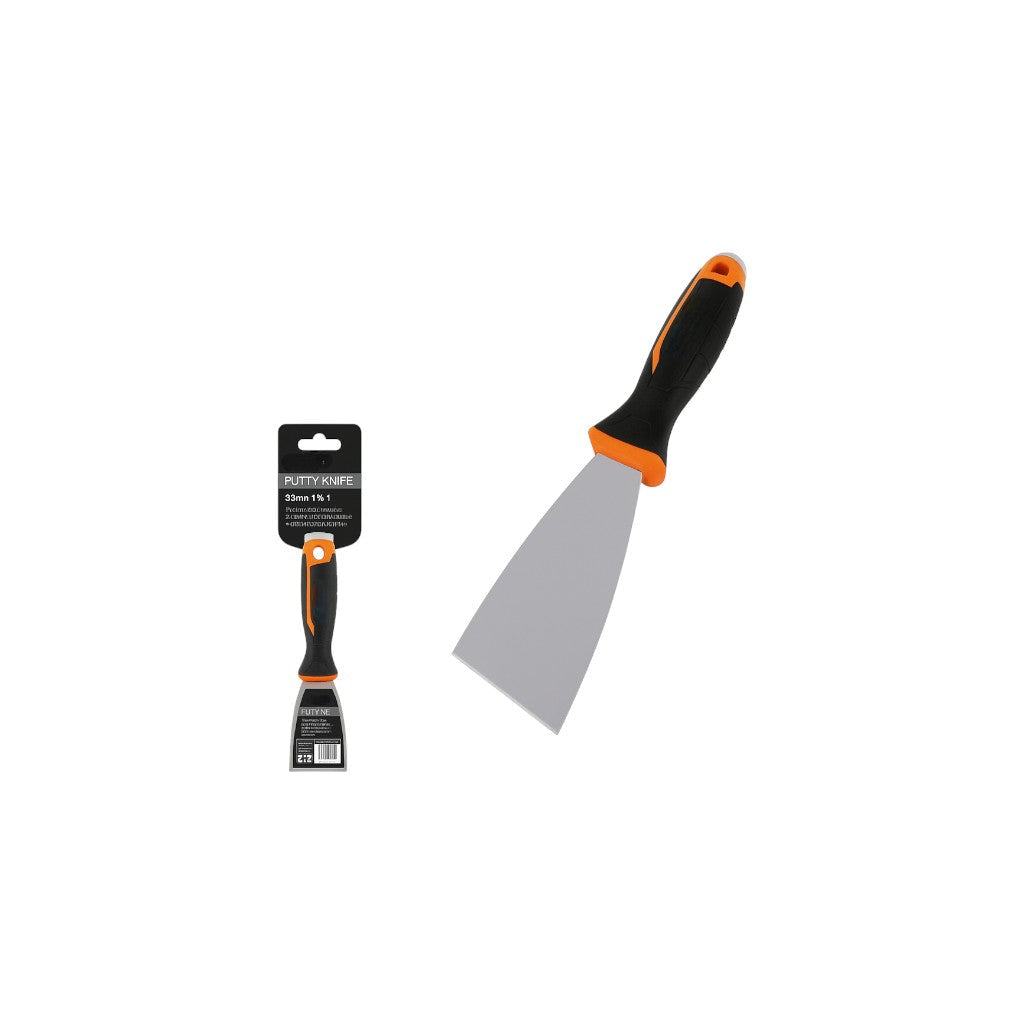 The Putty Knife 38 mm (1-1/2") features a high carbon steel blade with a non-stick coating for smooth application and easy cleanup. Designed with a flexible 1.0 mm blade and an ergonomic, solvent-resistant handle, it ensures comfort, control, and professional results—perfect for patching, filling, and surface finishing in both DIY and professional use.