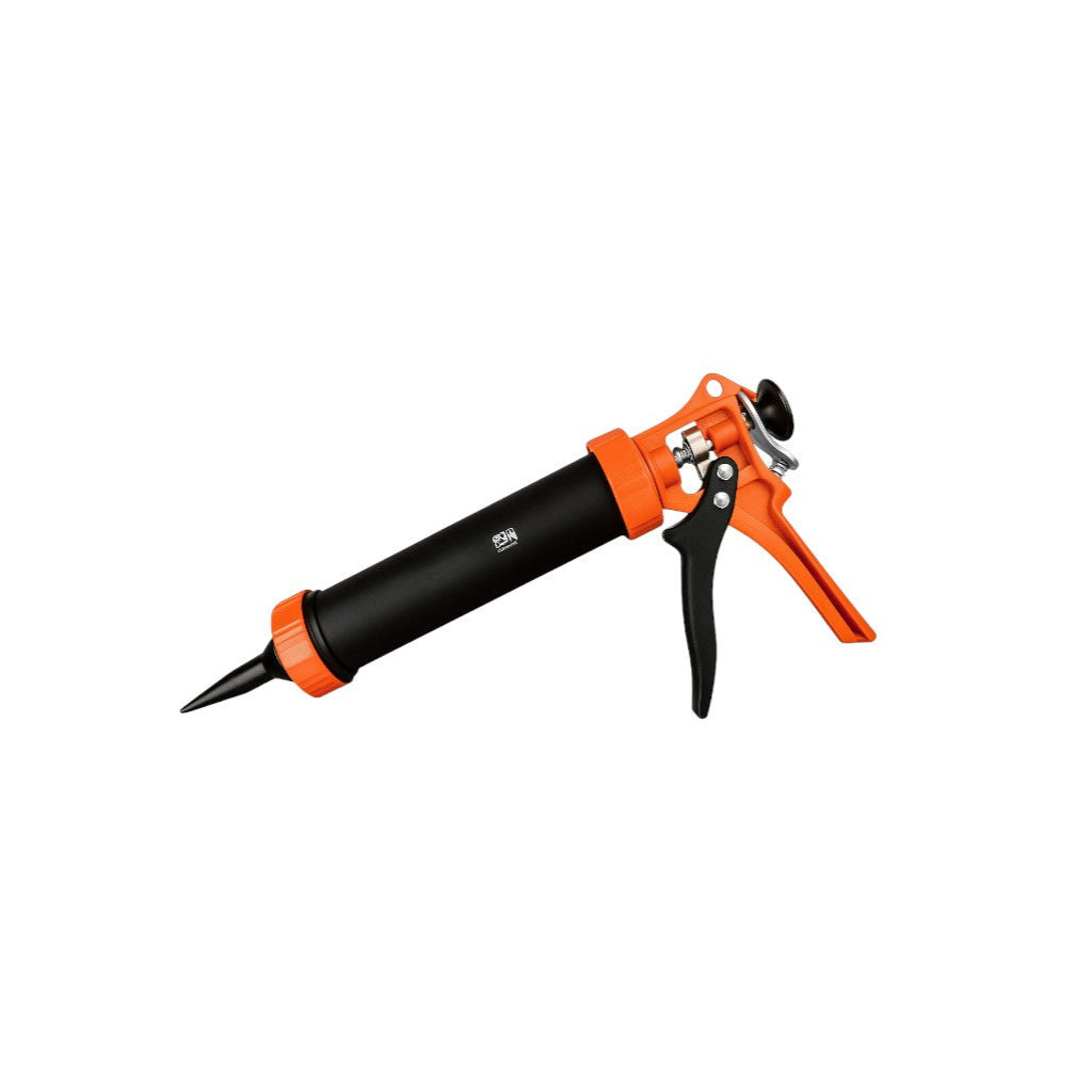 The Caulking Gun – 230 mm (9") Heavy-Duty Anti-Drip Model features a seamless die-cast aluminum alloy tube and a durable aluminum trigger for long-lasting performance. Designed for 300 ml (10 oz) cartridges, it includes a 360° rotating barrel for precise application, a quick-release anti-drip lever to prevent excess flow, and a riveted pressure plate with a 7.8 mm push rod for smooth, consistent delivery. Suitable for latex, silicone, adhesives, sealants, rubber compounds, and polyurethanes. (Pack includes 1 piece.)