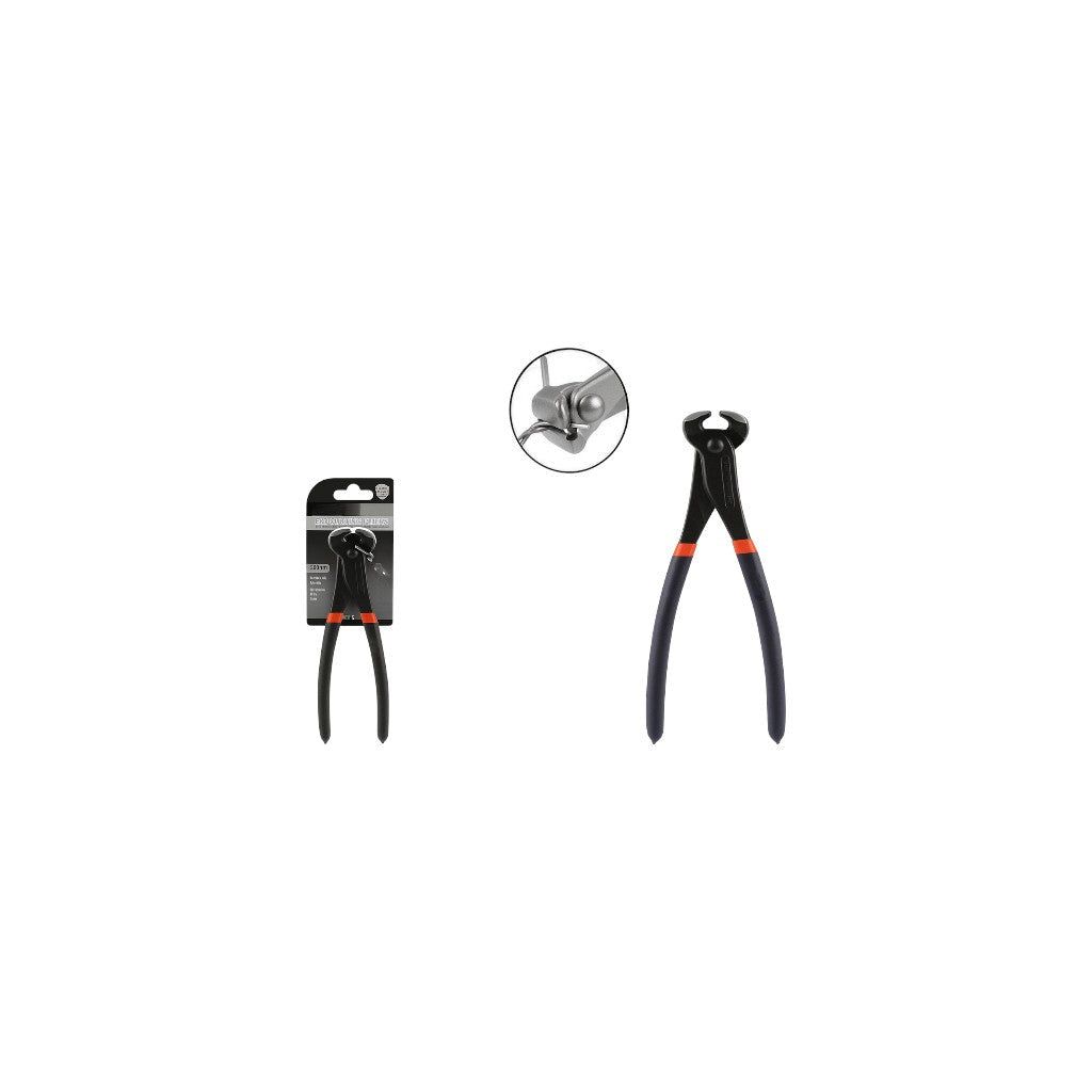 The End Cutting Pliers are designed for precision cutting, nail pulling, and wire twisting, featuring drop-forged steel construction with carbide-tipped jaws for superior durability. The ergonomic bi-material anti-slip handle provides comfort, control, and a secure grip for professional and DIY applications.