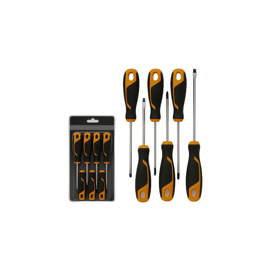 The 6-Piece Screwdriver Set combines durability, comfort, and precision, featuring hardened CR-V steel blades, magnetic precision tips, and shock-resistant ergonomic handles for superior grip and control. The set includes PH1×75 mm, PH1×100 mm, PH2×100 mm, 5×75 mm, 5×100 mm, and 6×125 mm screwdrivers—perfect for professional and everyday use.