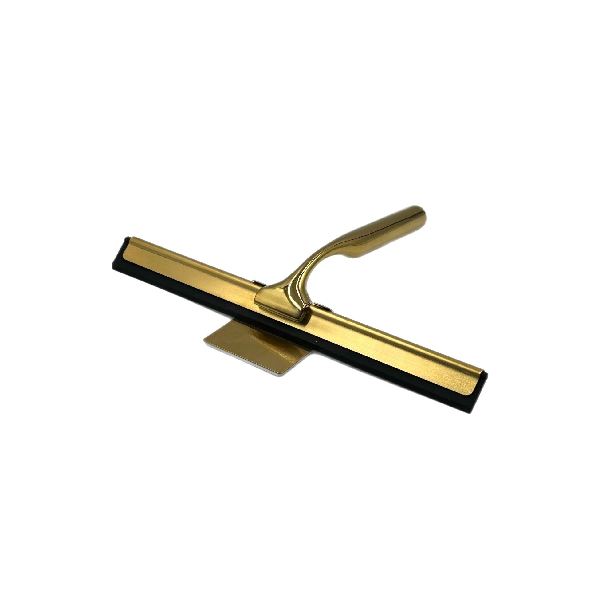 Stainless steel shower wiper with a sleek matte polished gold, designed to keep shower glass, mirrors, and tiles free from water marks; easy to handle and durable in construction, measuring...