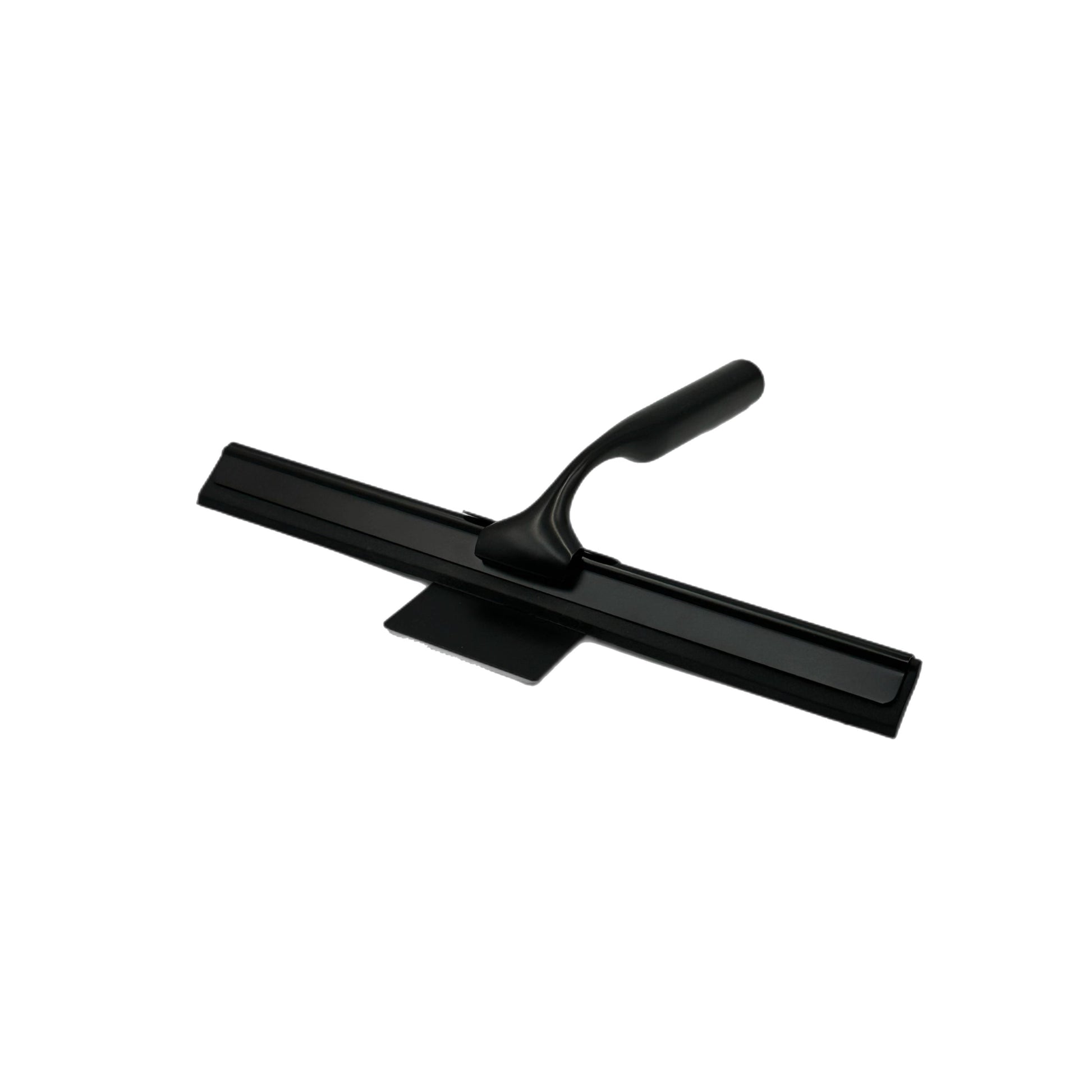 Stainless steel shower wiper with a sleek matte black finish, designed to keep shower glass, mirrors, and tiles free from water marks; easy to handle and durable in construction, measuring...