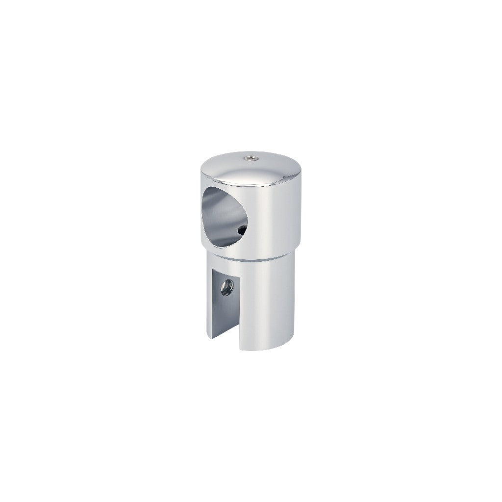 Adjustable (swivel) connector for securing a 19 mm stabilizer bar to a glass panel in shower enclosures. Material is made of brass body, it allows flexible angle adjustment for reliable support and stability. Supplied as a single connector per pack.