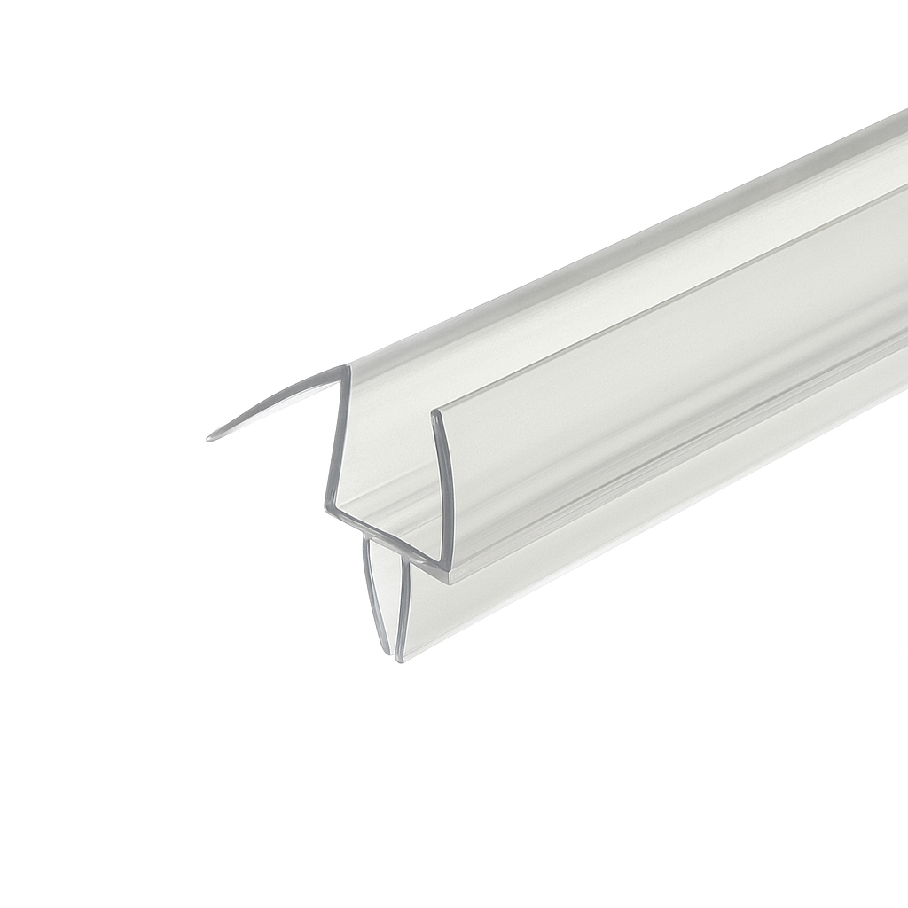 Snap-on bottom seal for frameless shower doors. Integrated drip rail channels water back into the enclosure, while dual wipe fins provide extra splash protection—no drilling required.