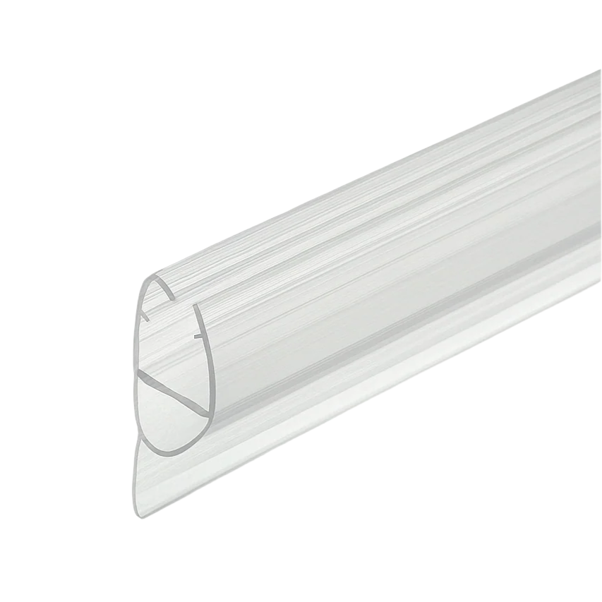 Snap-on bottom seal for frameless shower doors. Integrated drip rail channels water back into the enclosure, while dual wipe fins provide extra splash protection—no drilling required.