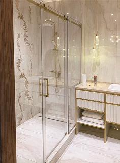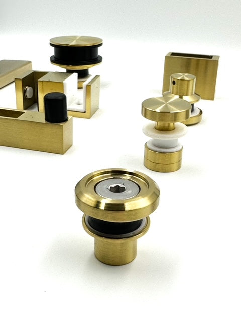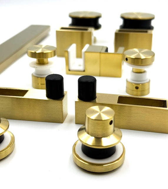 - Full sliding shower series kit- Glass thickness: 10mm-12mm- Full kit includes: 2x Roller, 2x Anti-jump, 2x Brace, 2x Wall end cap, 2x Door stop, 1x Floor guide and 1x 1650mm Square bar.- Finish: Brushed Gold