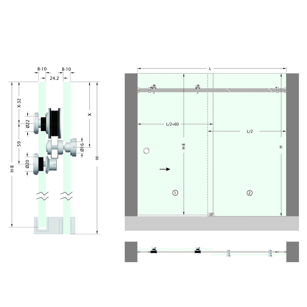 - Full sliding shower series kit- Glass thickness: 10mm-12mm- Full kit includes: 2x Roller, 2x Anti-jump, 2x Brace, 2x Wall end cap,...