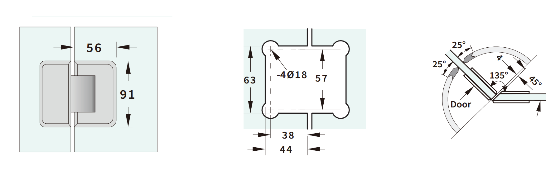 Door Weight: Up to 35 kg using two hinges
