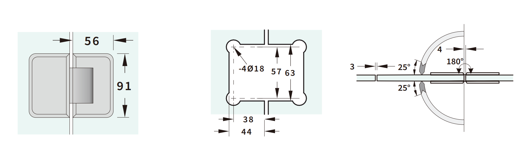 Mounting Type: Glass-to-Glass (door to fixed sidelight)