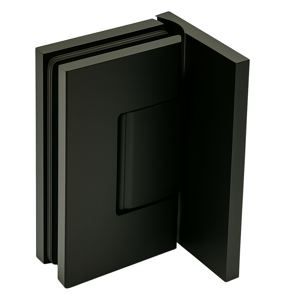 Offset Plate Wall-to-Glass 90° Hinge with Cover | Frameless Shower Hinge | Matte Black