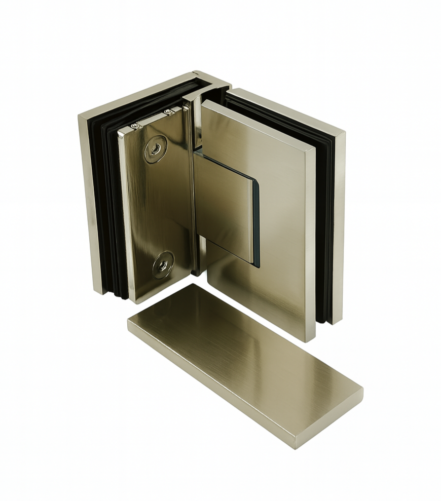 Glass-to-Glass 90° | Frameless Shower Hinge | Satin Nickel