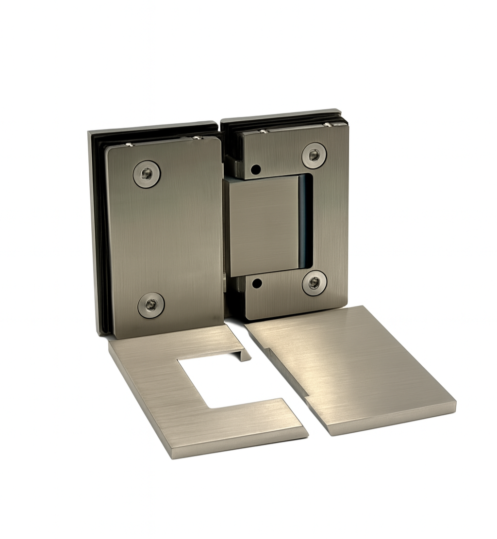 Glass-to-Glass 180° Hinge with Cover | Frameless Shower Hinge | Satin Nickel